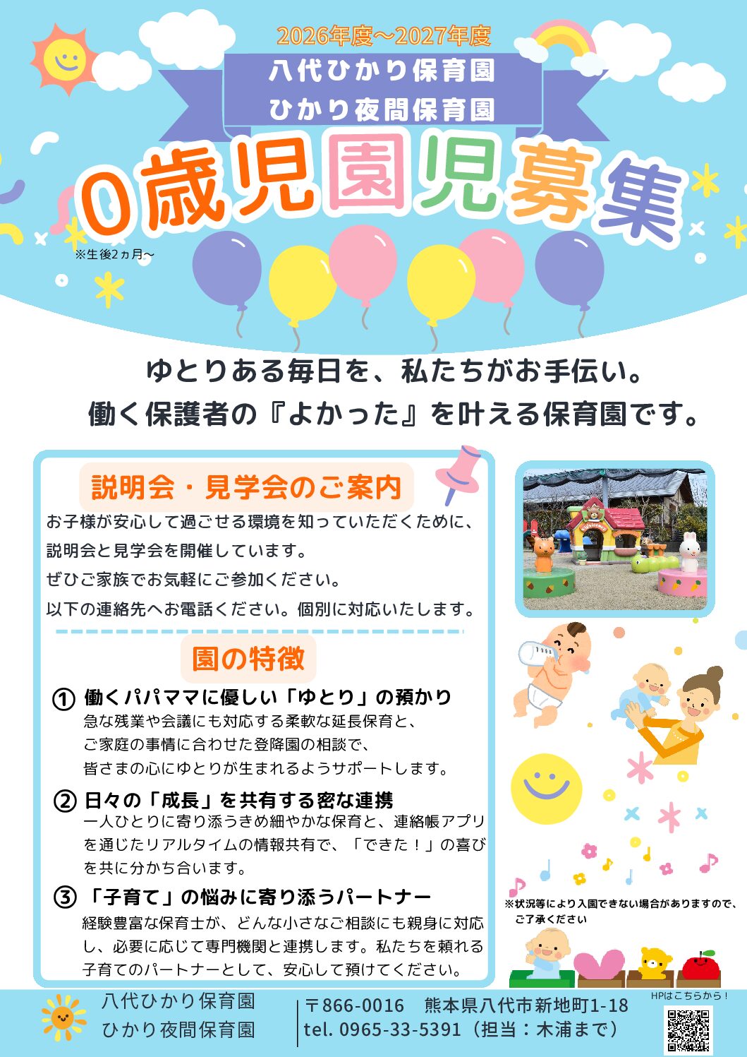 〈お知らせ〉0歳児クラスの園児さん募集中