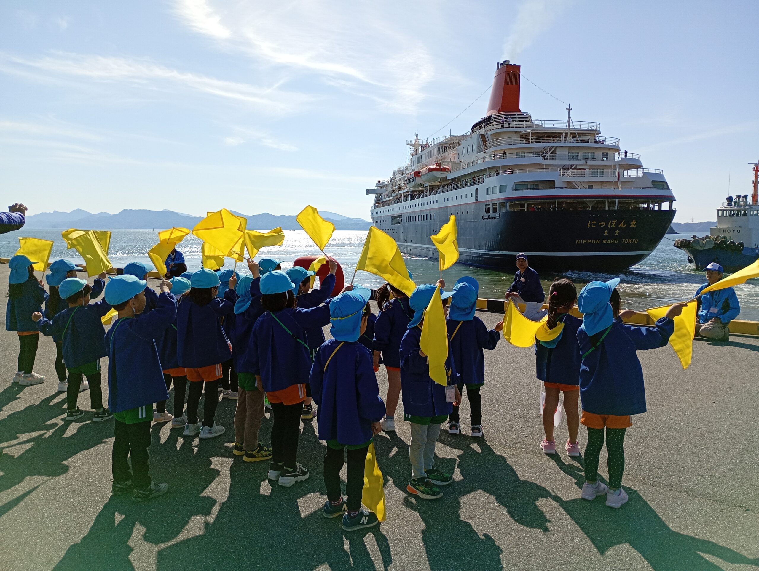 今回は「お手振り隊」として、出発するにっぽん丸を見送る大役も務めました。